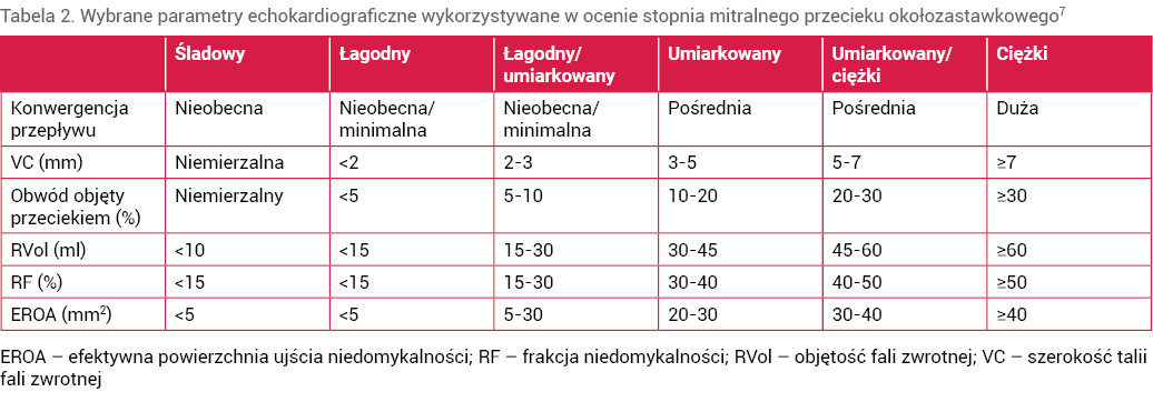 Tabela 2. Wybrane parametry echokardiograficzne wykorzystywane w ocenie stopnia mitralnego przecieku okołozastawkowego7