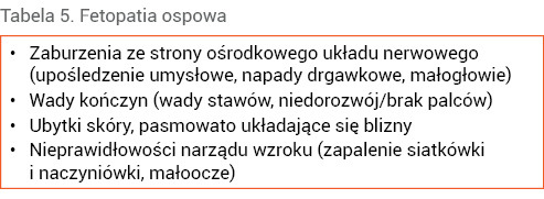 Zachorowanie na ospę wietrzną w I trymestrze ciąży oraz na wczesnym etapie II trymestru (8-20 tydzień ciąży) wiąże się z szacowanym na 2% ryzykiem rozwoju zespołu ospy wrodzonej oraz wystąpienia wad płodu (tab. 5).