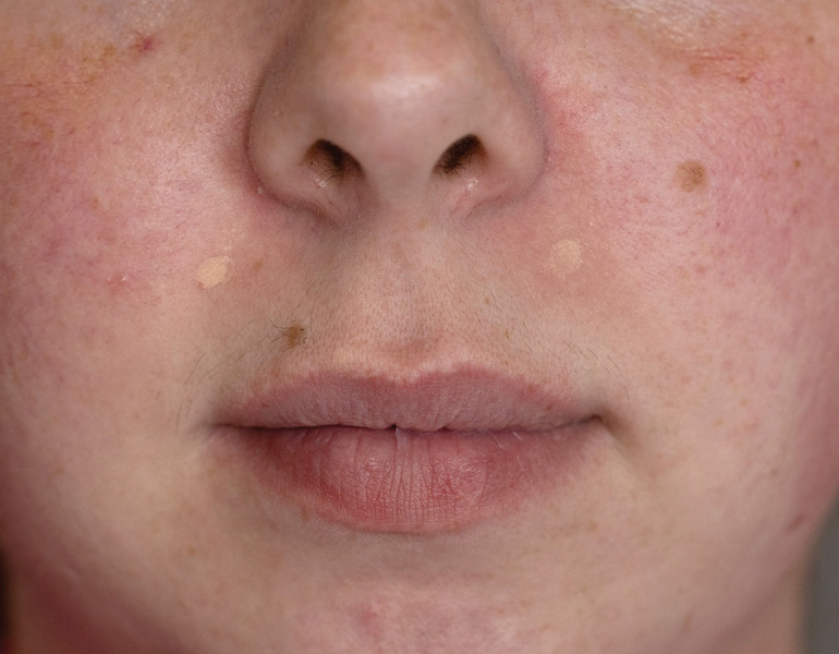 Zgodnie z aktualną wiedzą medyczną1,3,4, po dezynfekcji skóry w okolicy wkłucia, na każdy z punktów iniekcji podano 2,5 j. Speywooda/1 j. botoksu preparatu Azzalure, który został przygotowany zgodnie z instrukcją producenta, przy użyciu jałowego roztworu do wstrzykiwań 0,9% chlorku sodu. Podczas zabiegu pojawiło się mierne krwawienie w punktach iniekcji. Pacjentka zabieg zniosła dobrze. Następnie przeprowadzono regularne kontrole w odstępach czasowych: 1 tydzień, 2 tygodnie i 4 tygodnie po zabiegu. Ostateczny zadowalający pacjentkę i badaczy efekt został uzyskany po 2 tygodniach. Na początku okresu kontrolnego pacjentka skarżyła się na brak możliwości ułożenia wargi górnej w pozycji „dziubka’’, jednak po upływie 2 tygodni nie zauważała już tego objawu6.